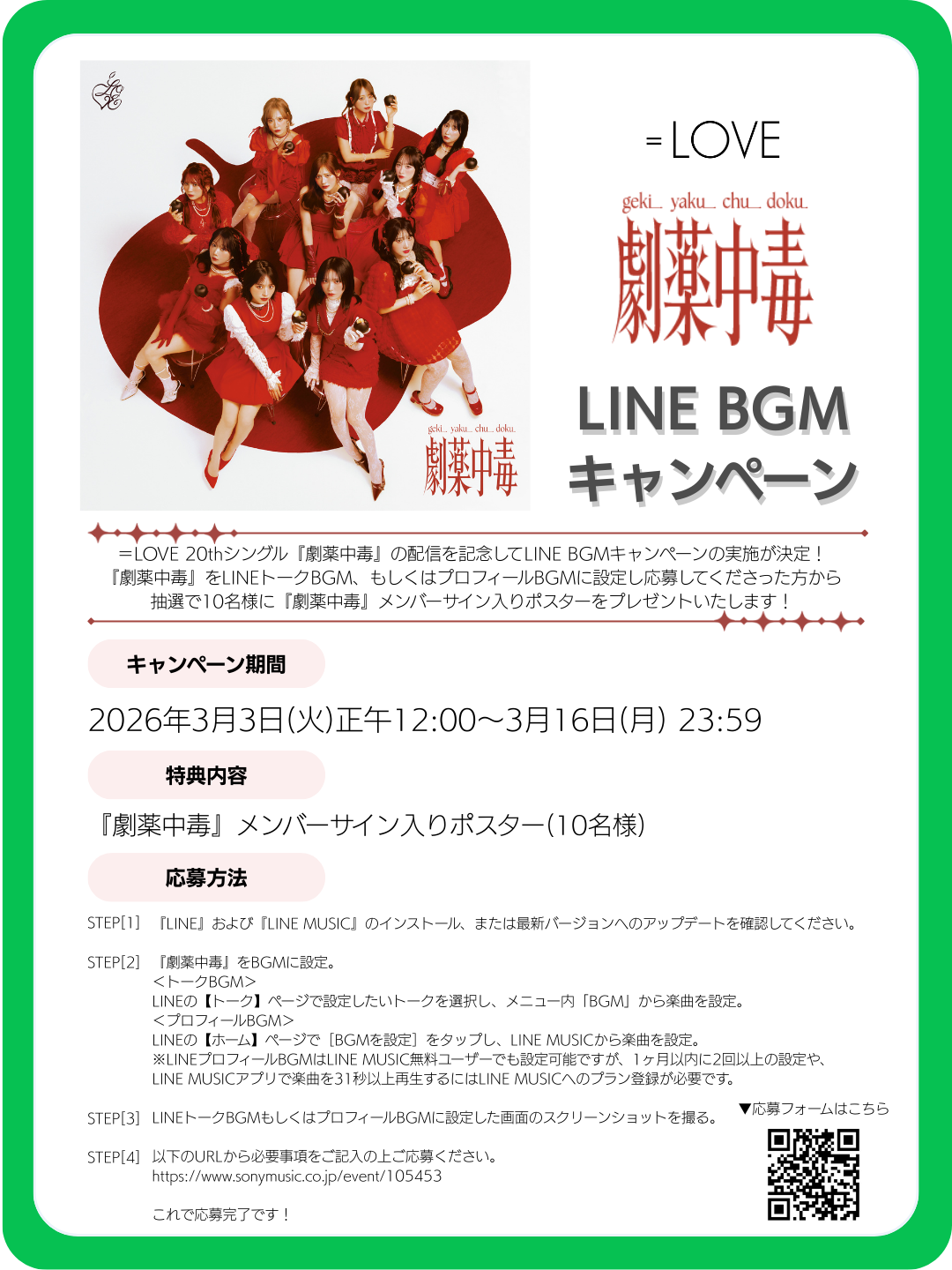 =LOVE 20thシングル表題曲『劇薬中毒』の配信を記念して、LINE BGMキャンペーンの実施が決定いたしました!