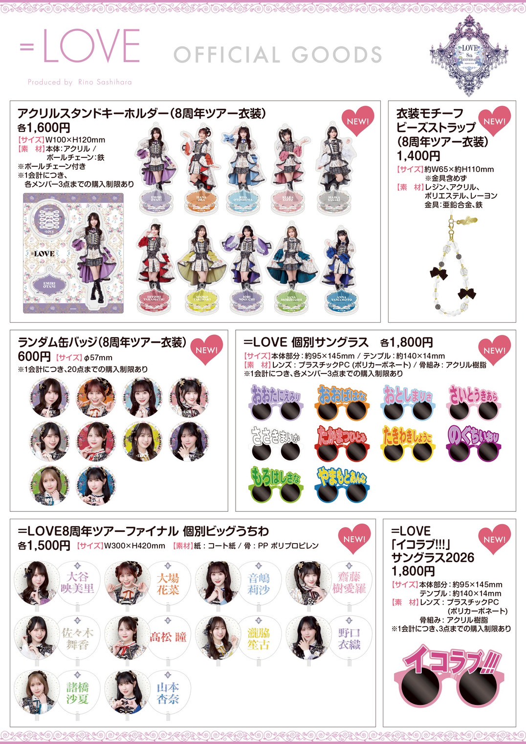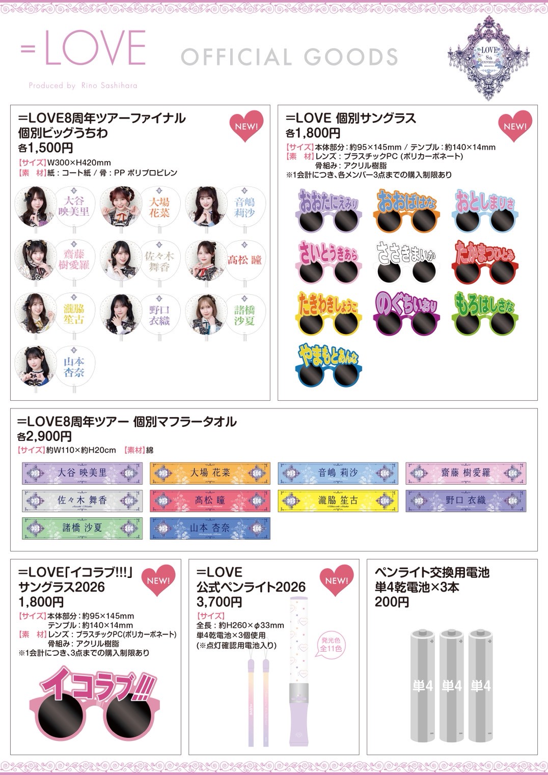 ※横浜スタジアム場外コンコースでは8周年ツアー 個別マフラータオル・8周年ツアーファイナル 個別ビッグうちわ・個別サングラス・「イコラブ!!!」サングラス2026・=LOVE 公式ペンライト2026・電池のみの取り扱いとなります。